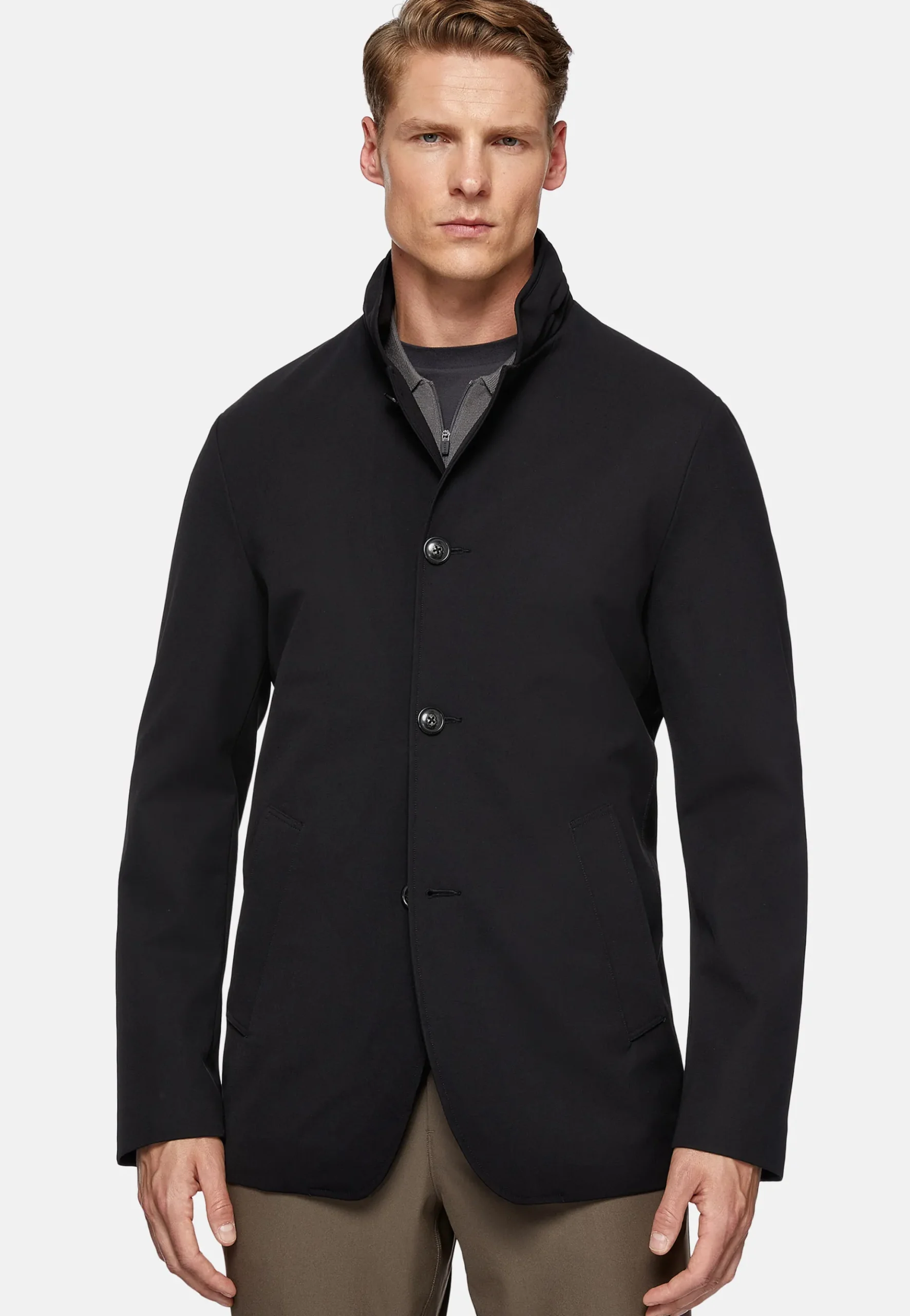 Grâce à l’armure composé de deux fils techniques différents, le vêtement est doté d’un aspect similaire à celui de la laine, avec l’avantage d’être infroissable et déperlant.