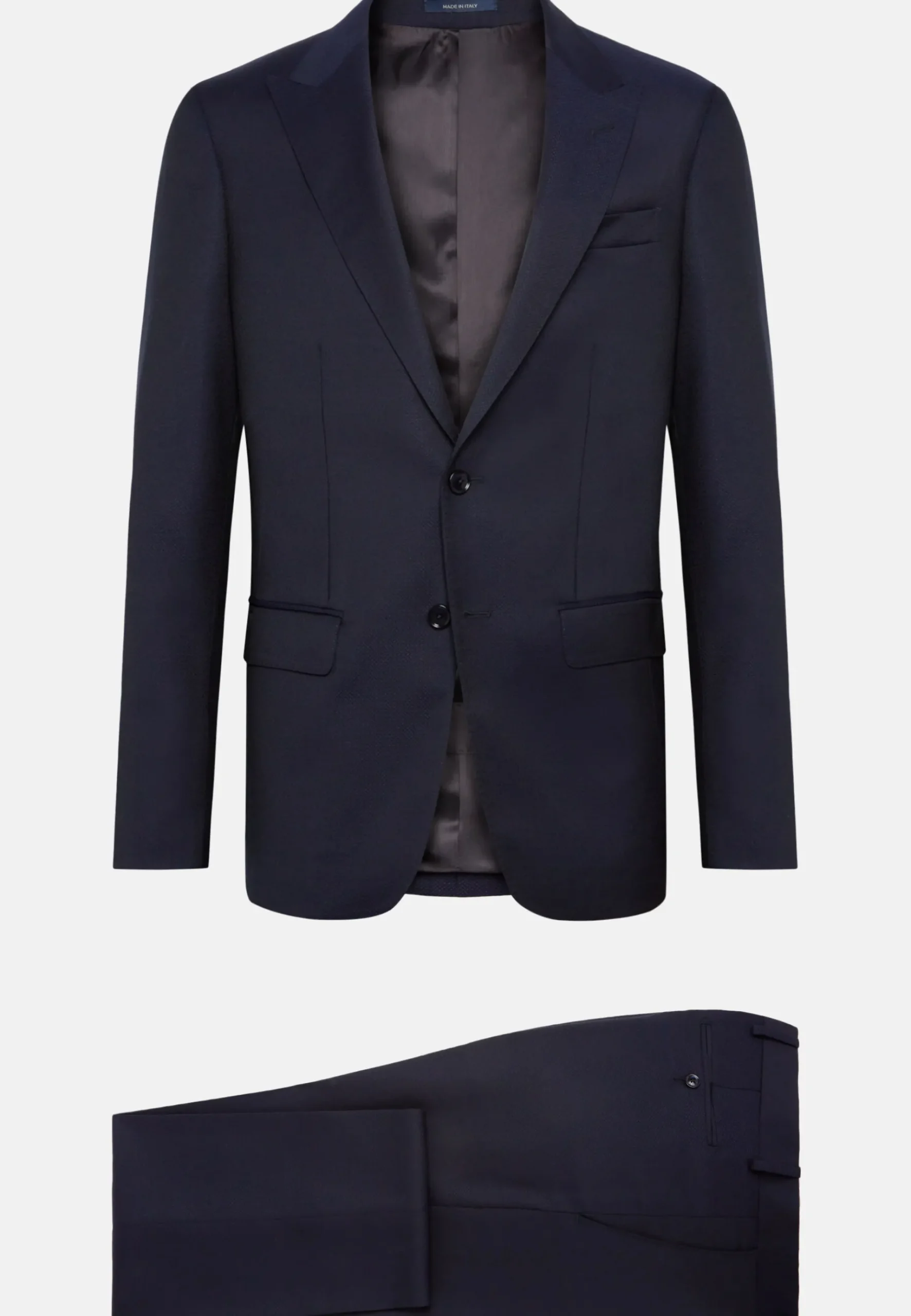 Costume slim fit avec construction semi-entoilée, à simple boutonnage, revers en pointe, entièrement doublé avec poches à rabat.