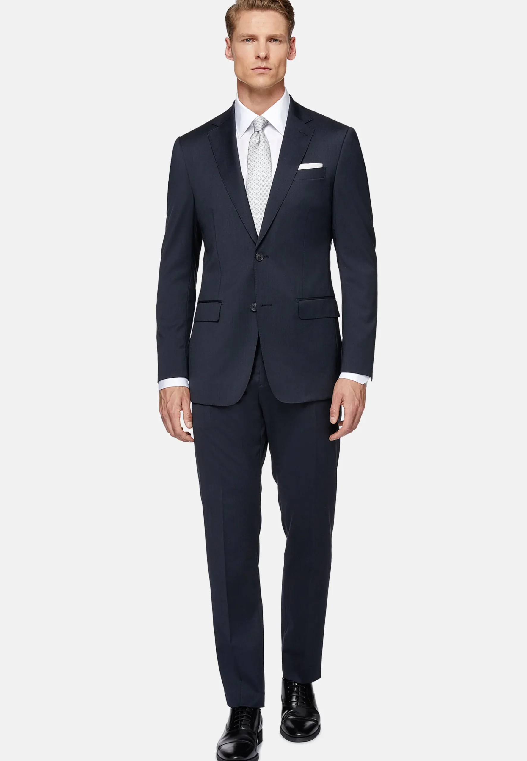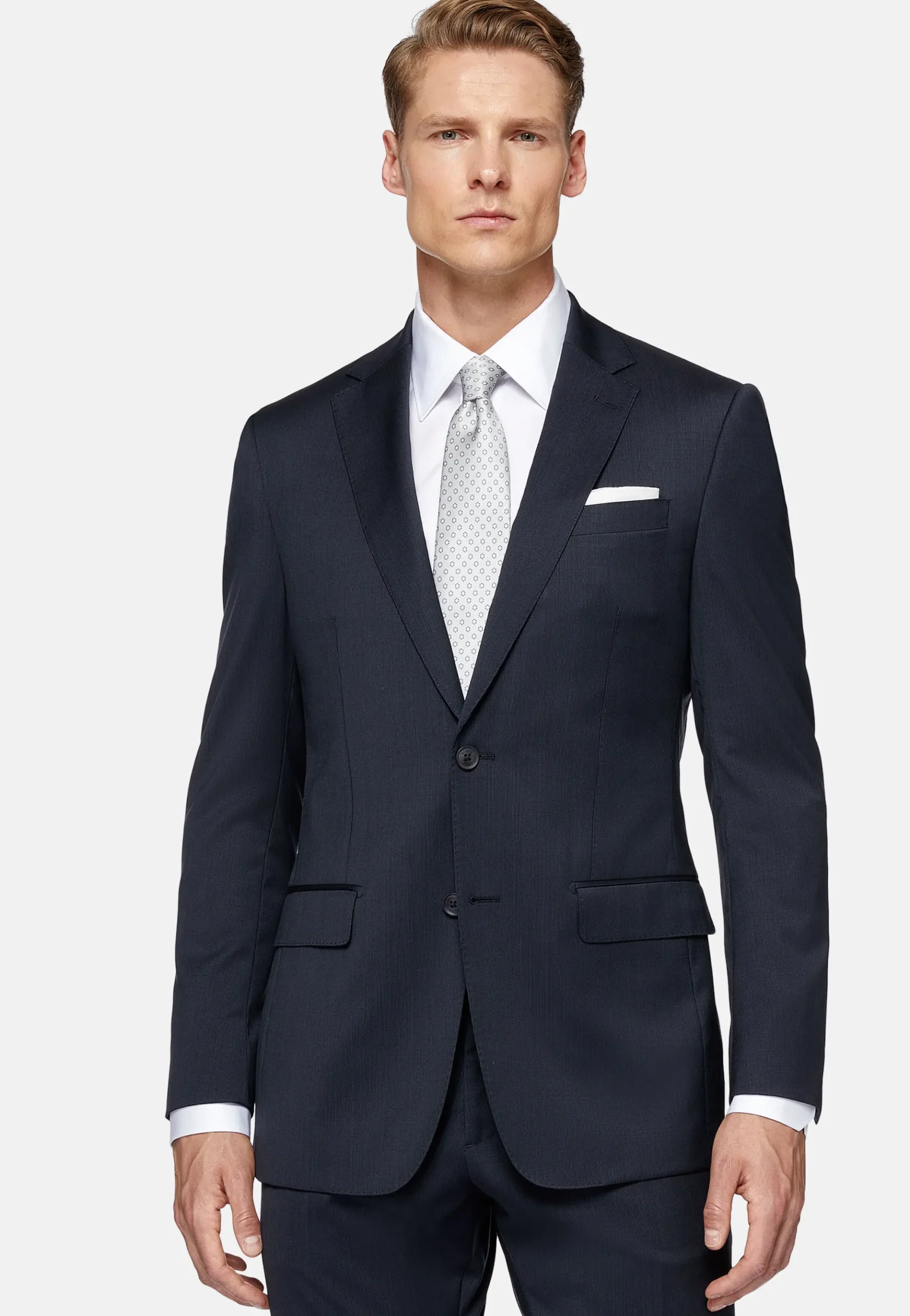 Costume slim fit à simple boutonnage, entièrement doublé avec poches à rabat.
