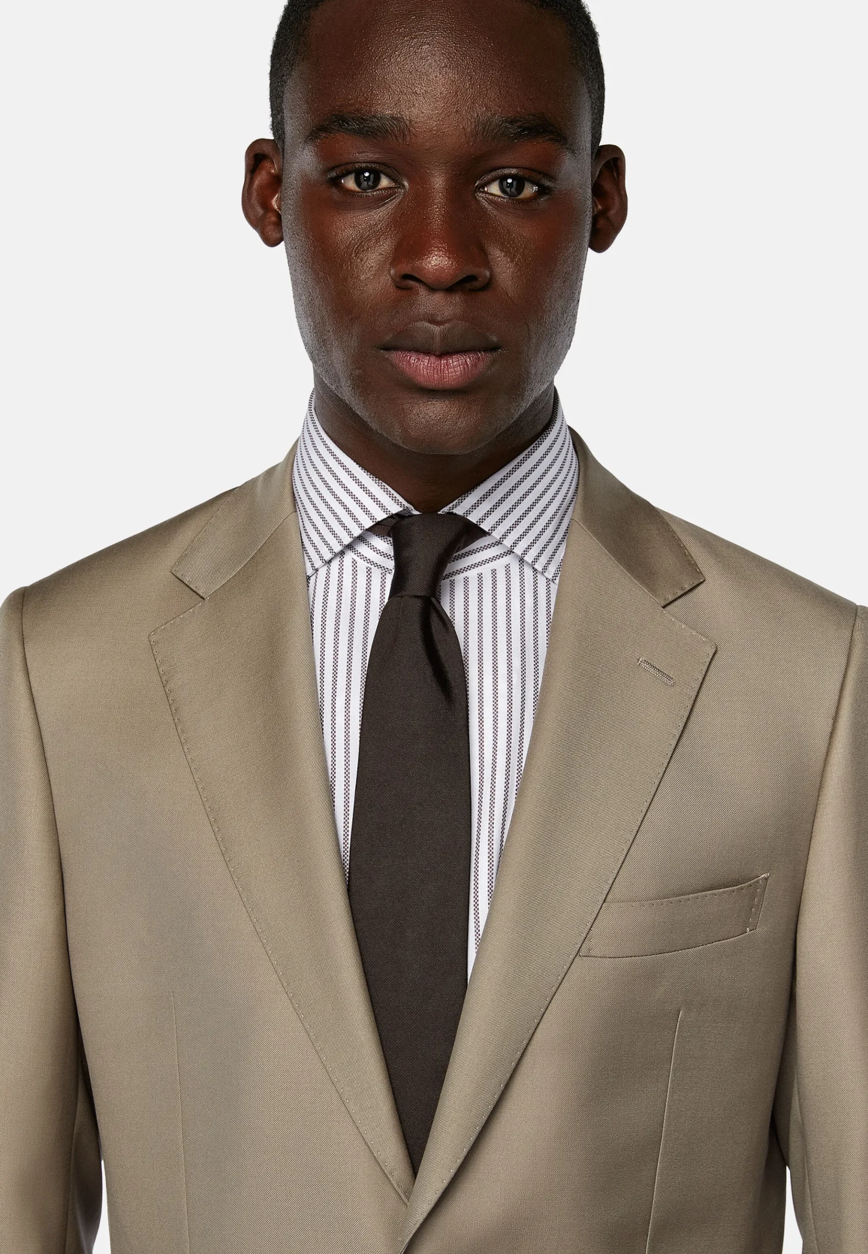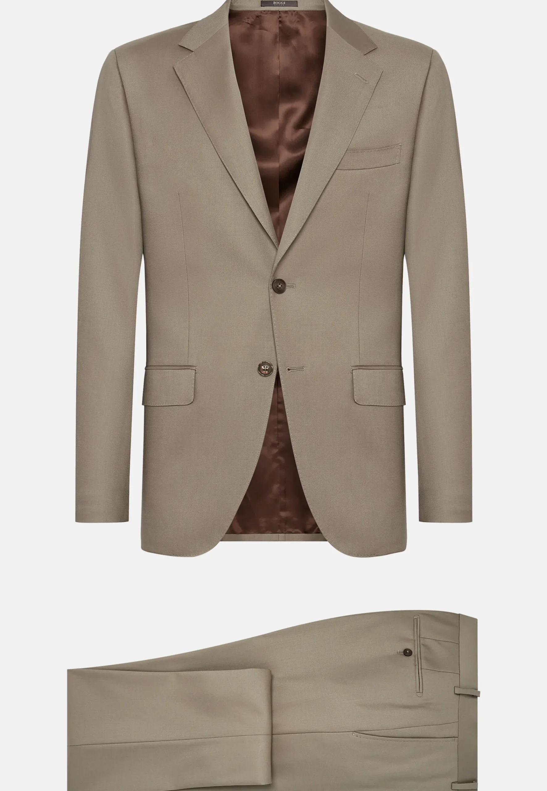 Costume coupe droite, confection semi-entoilée, à simple boutonnage, entièrement doublé avec poches à rabat.