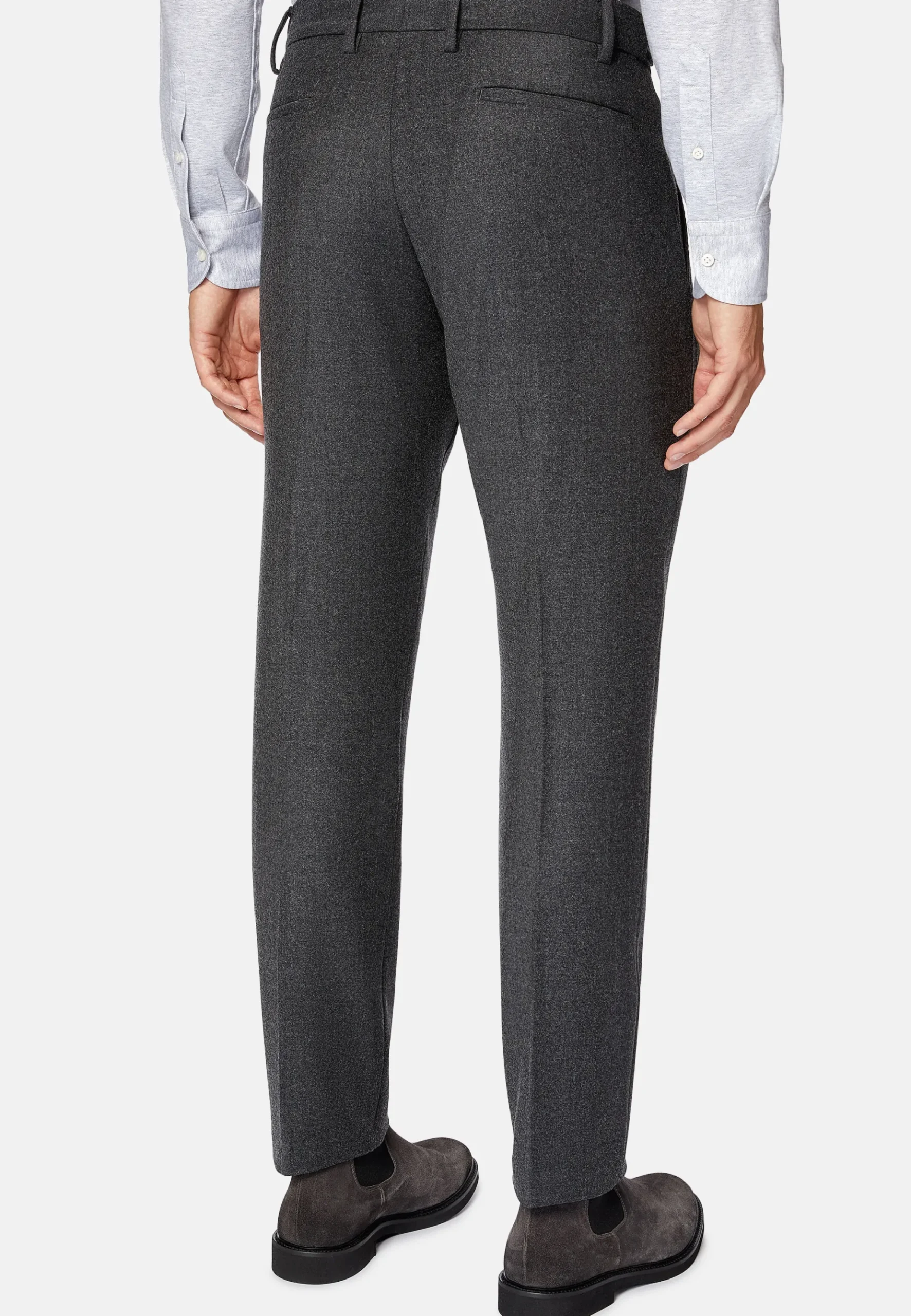 Fermeture boutonnée, avec zip et ajustement latéral, poches avant en biais et poches arrière.