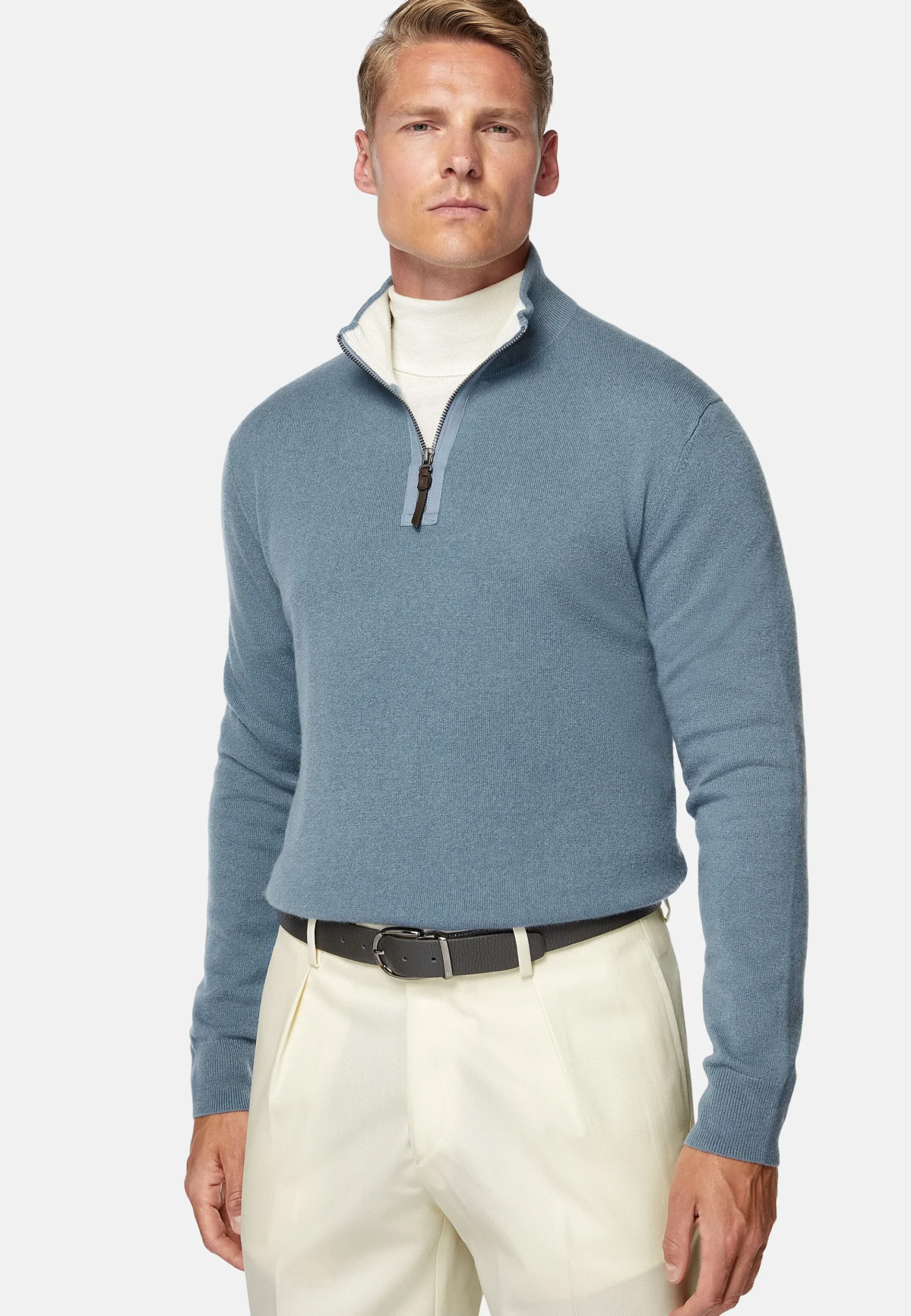 Le vêtement présente une fermeture éclair avec finition en faux daim et une tirette logotée avec le B de Boggi en cuir véritable.