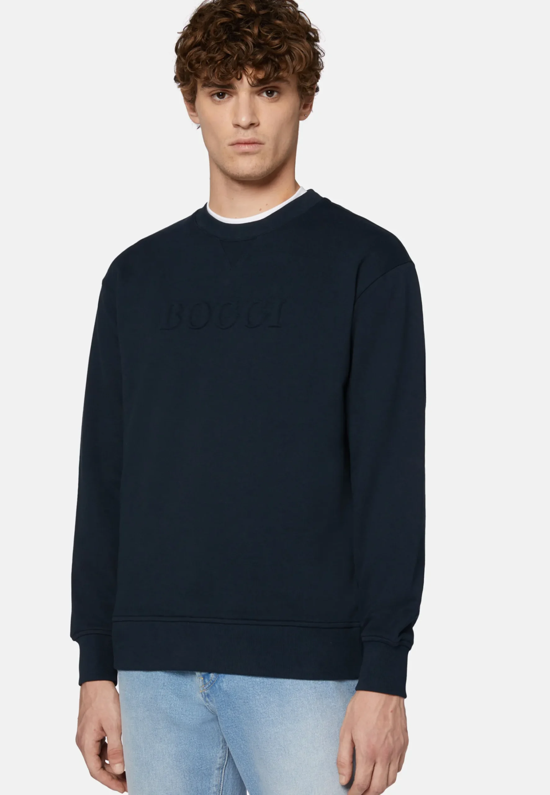 Le modèle présente une finition en côtes du col, des poignets et du bas et le logo Boggi réalisé en relief sur la poitrine.