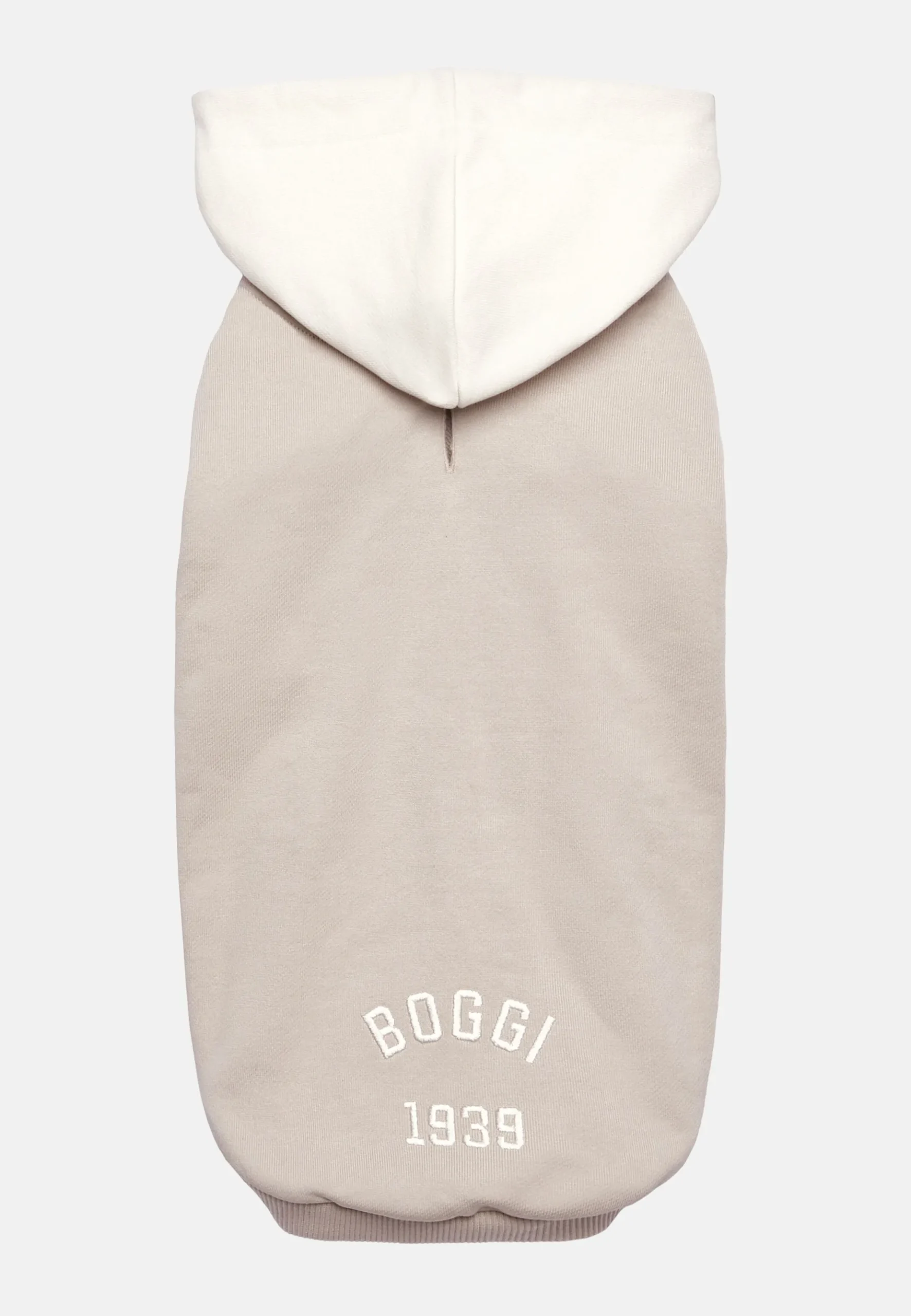 Le vêtement présente un logo brodé sur le bas et le poitrail, des finitions côtelées sur les jambes avant et le bord inférieur et une boutonnière pratique pour le passage de la laisse dans le dos.