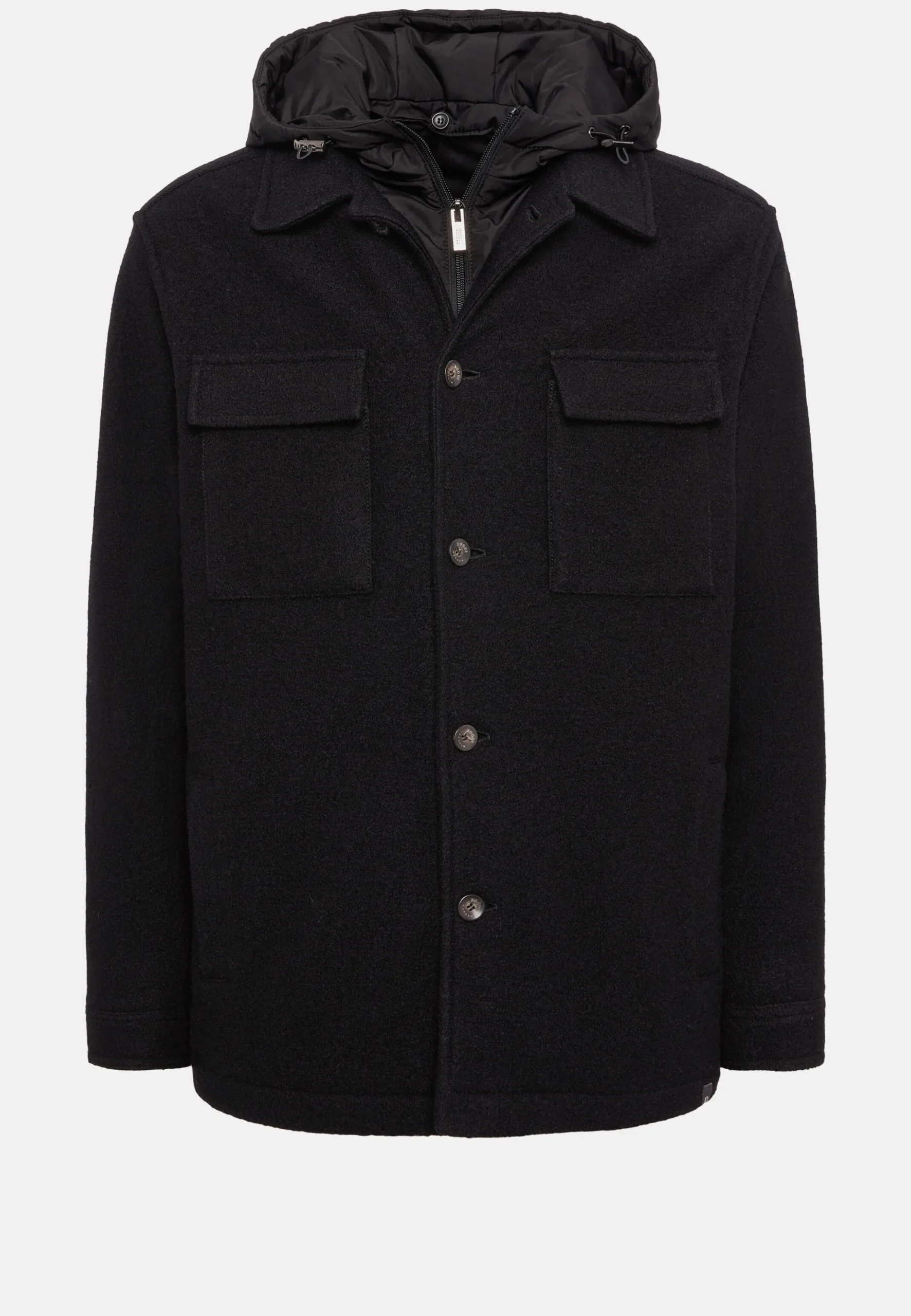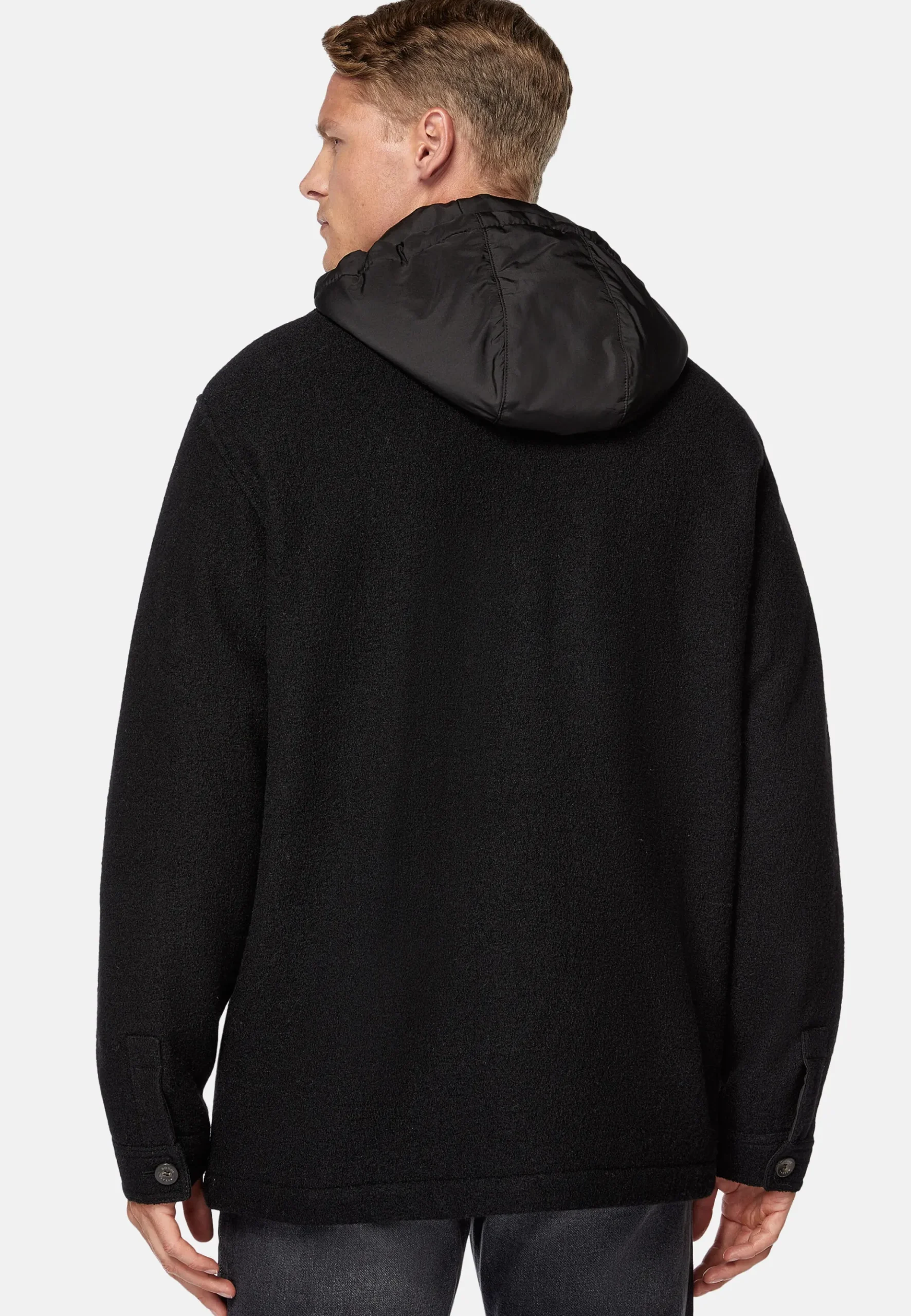 Ce modèle présente un plastron rembourré amovible avec capuche, en tissu technique résistant à l’eau, des boutons avec logo et le B de Boggi en bas à gauche du vêtement.