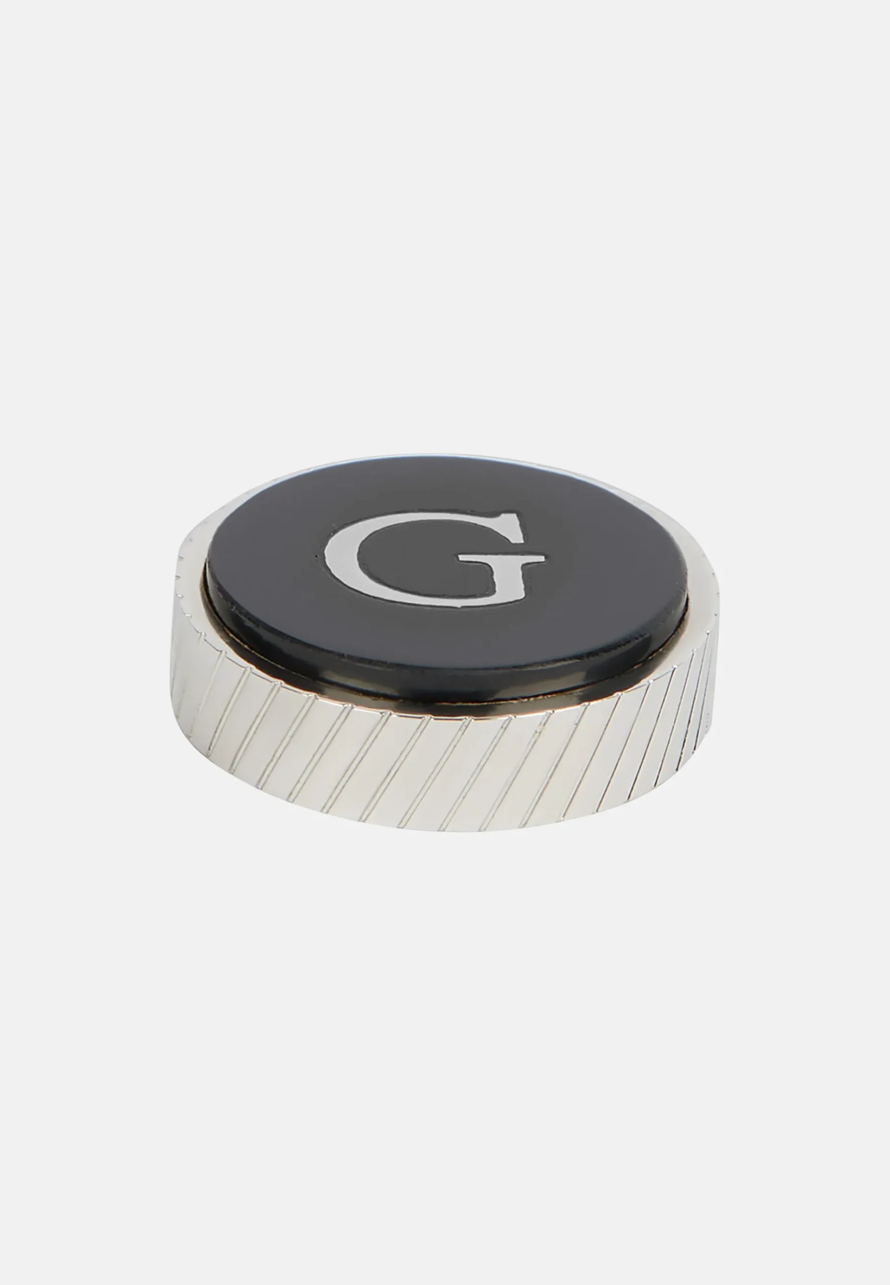 il se caractérise par la lettre émaillée sur fond noir, à appliquer sur la base spéciale pour boutons de manchette en métal.