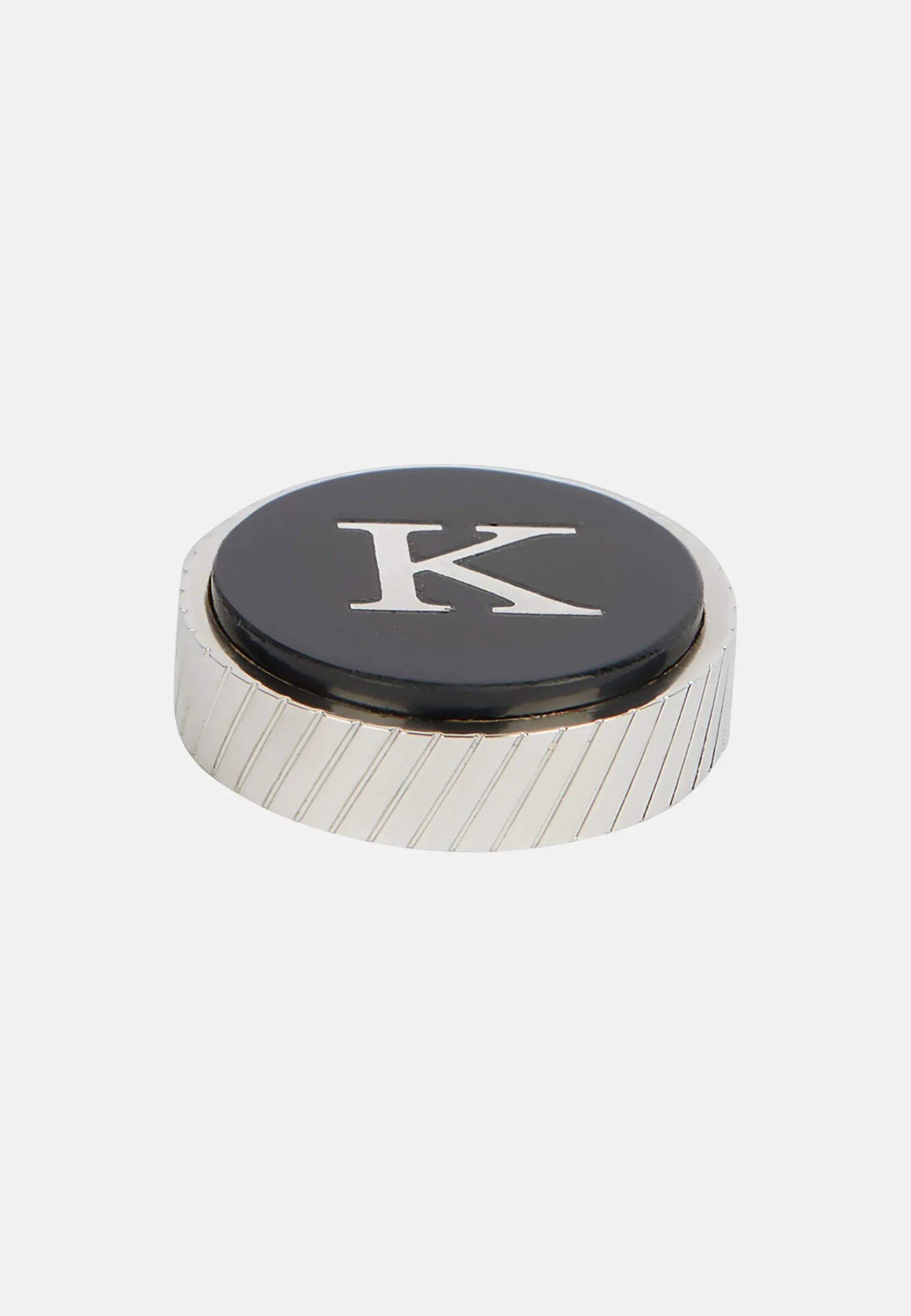 il se caractérise par la lettre émaillée sur fond noir, à appliquer sur la base spéciale pour boutons de manchette en métal.