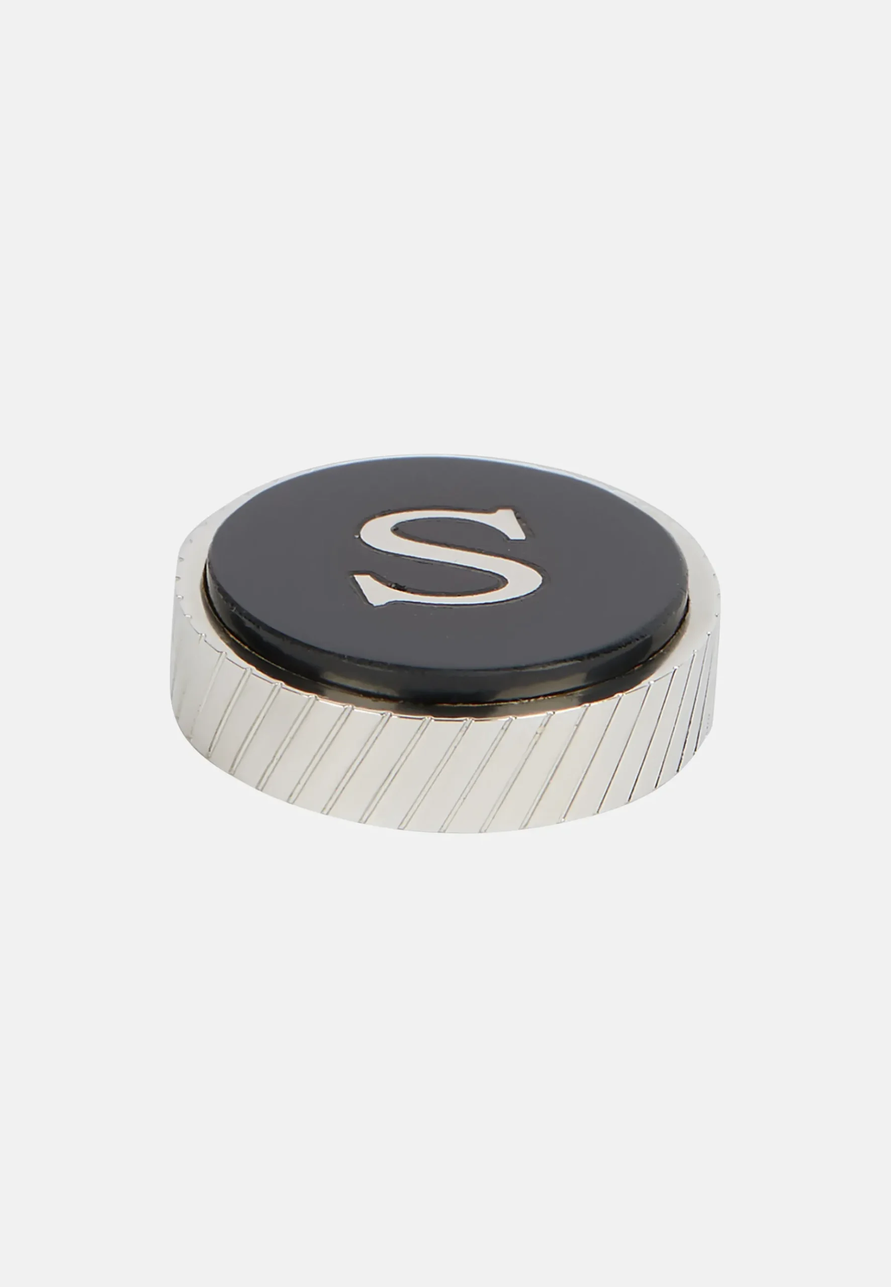 il se caractérise par la lettre émaillée sur fond noir, à appliquer sur la base spéciale pour boutons de manchette en métal.