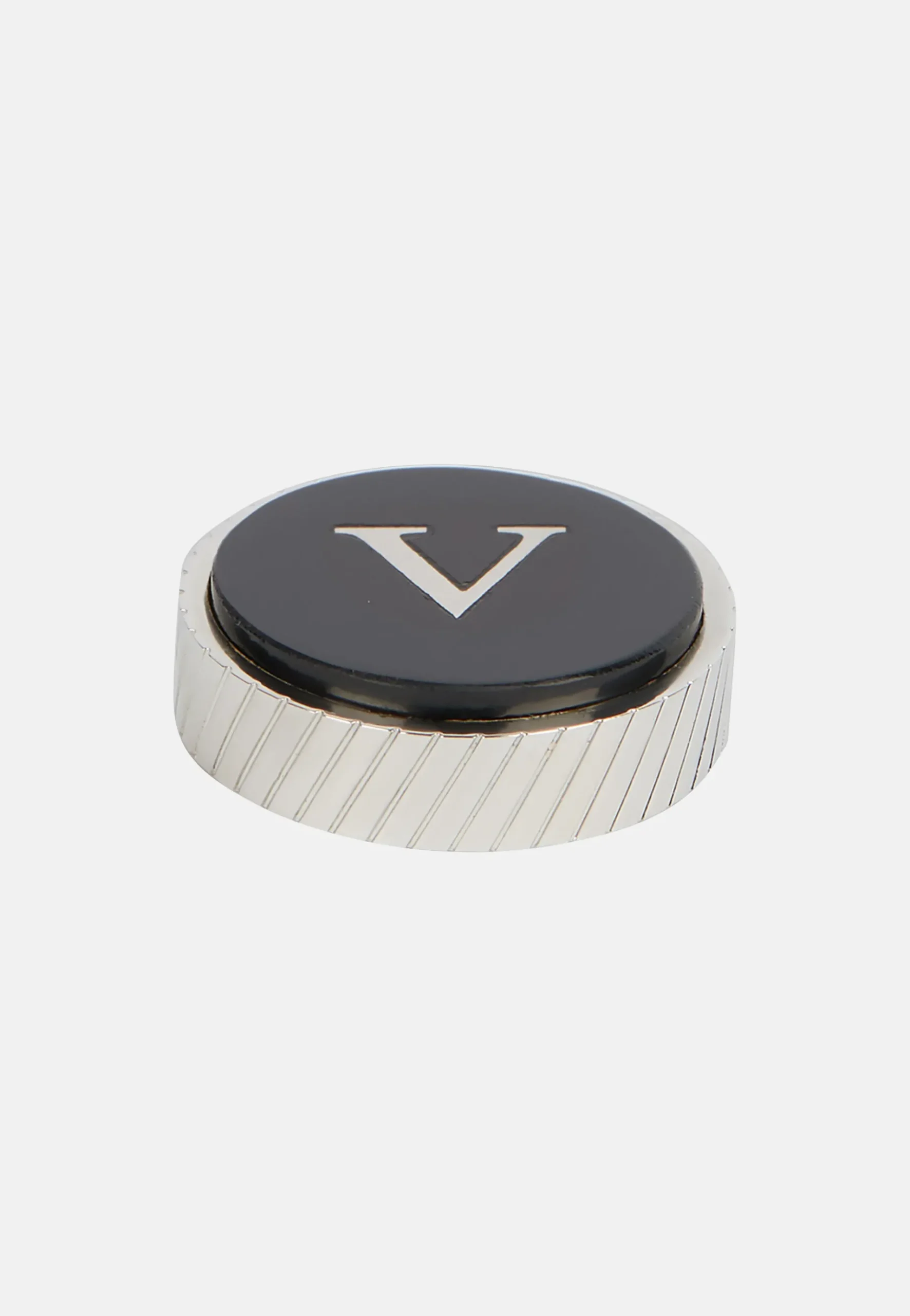 il se caractérise par la lettre émaillée sur fond noir, à appliquer sur la base spéciale pour boutons de manchette en métal.