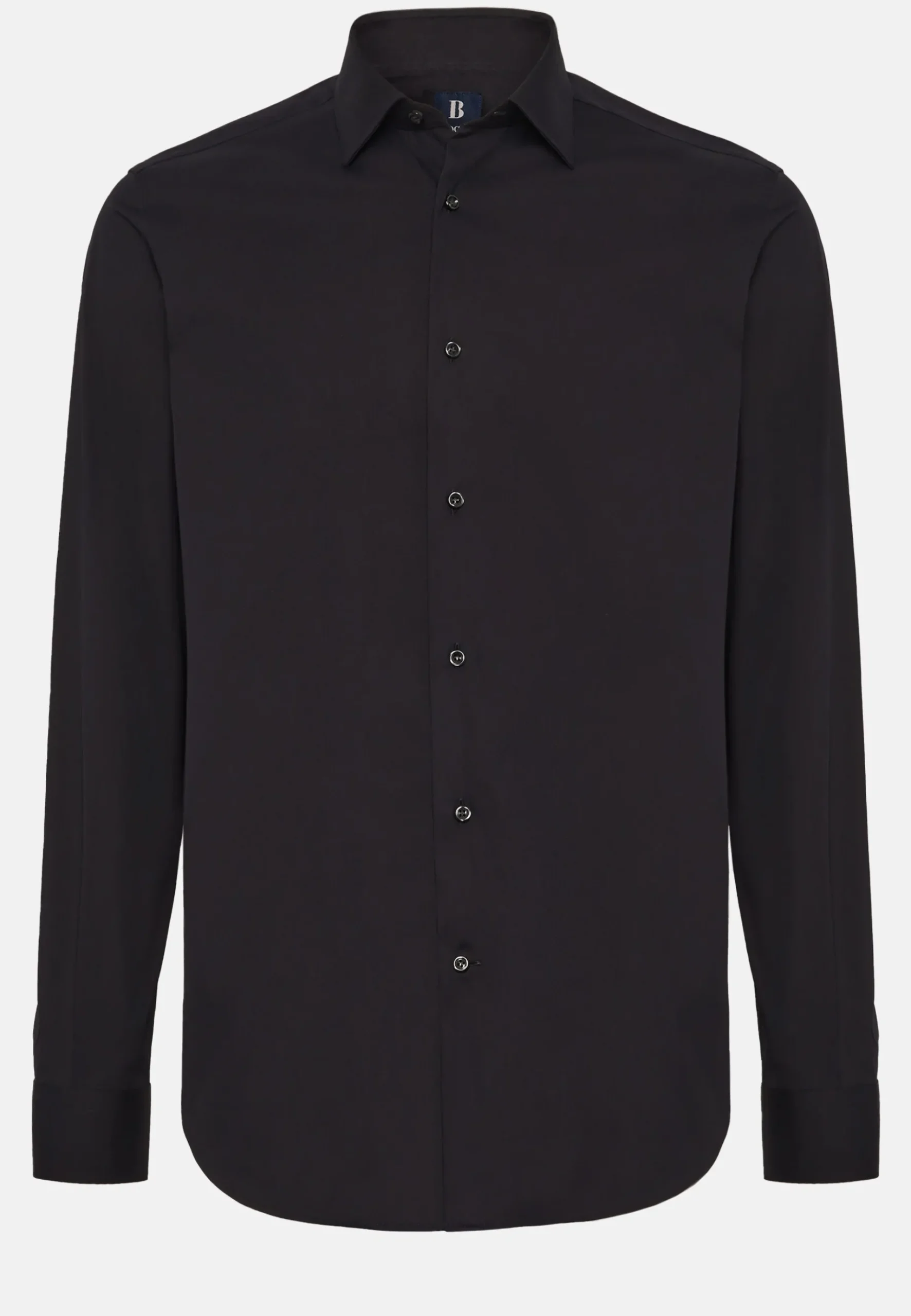 En popeline de coton extensible à double retors fabriquée en Italie.