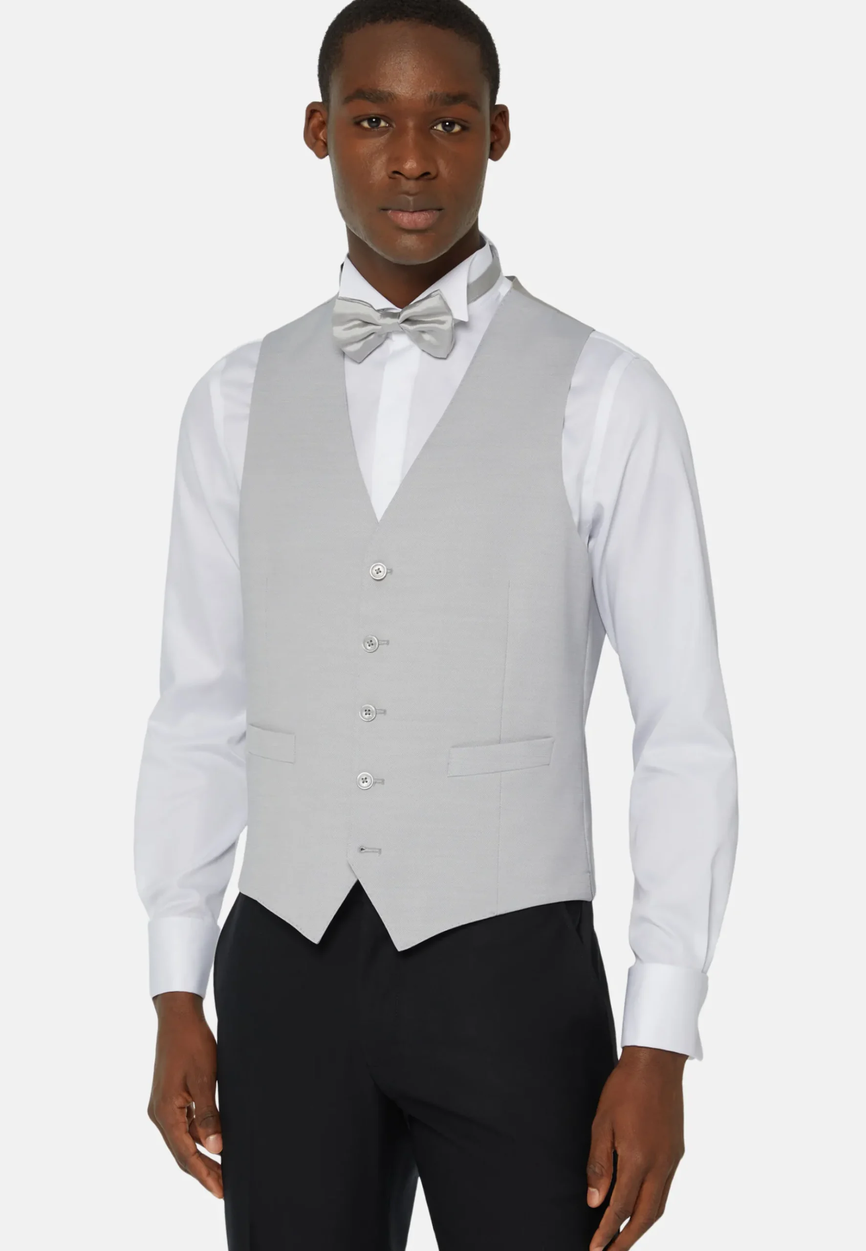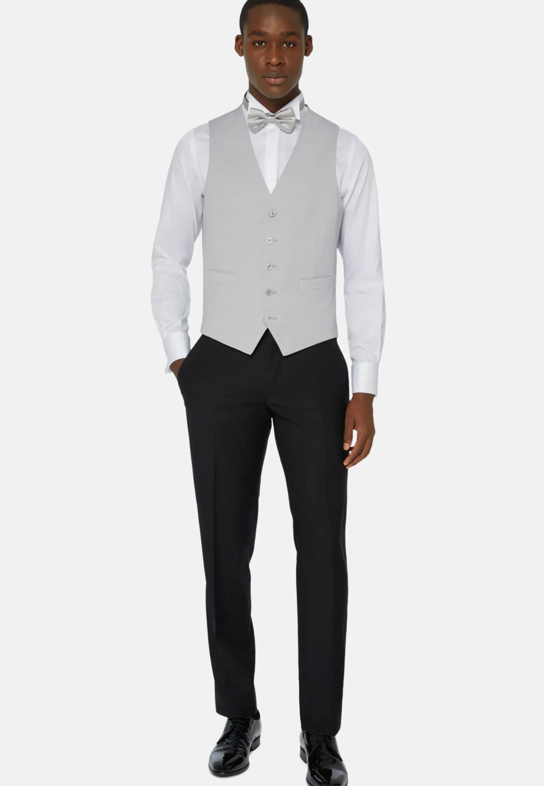 Modèle classique à 5 boutons en laine mélangée, c’est le vêtement idéal pour compléter une tenue de cérémonie.