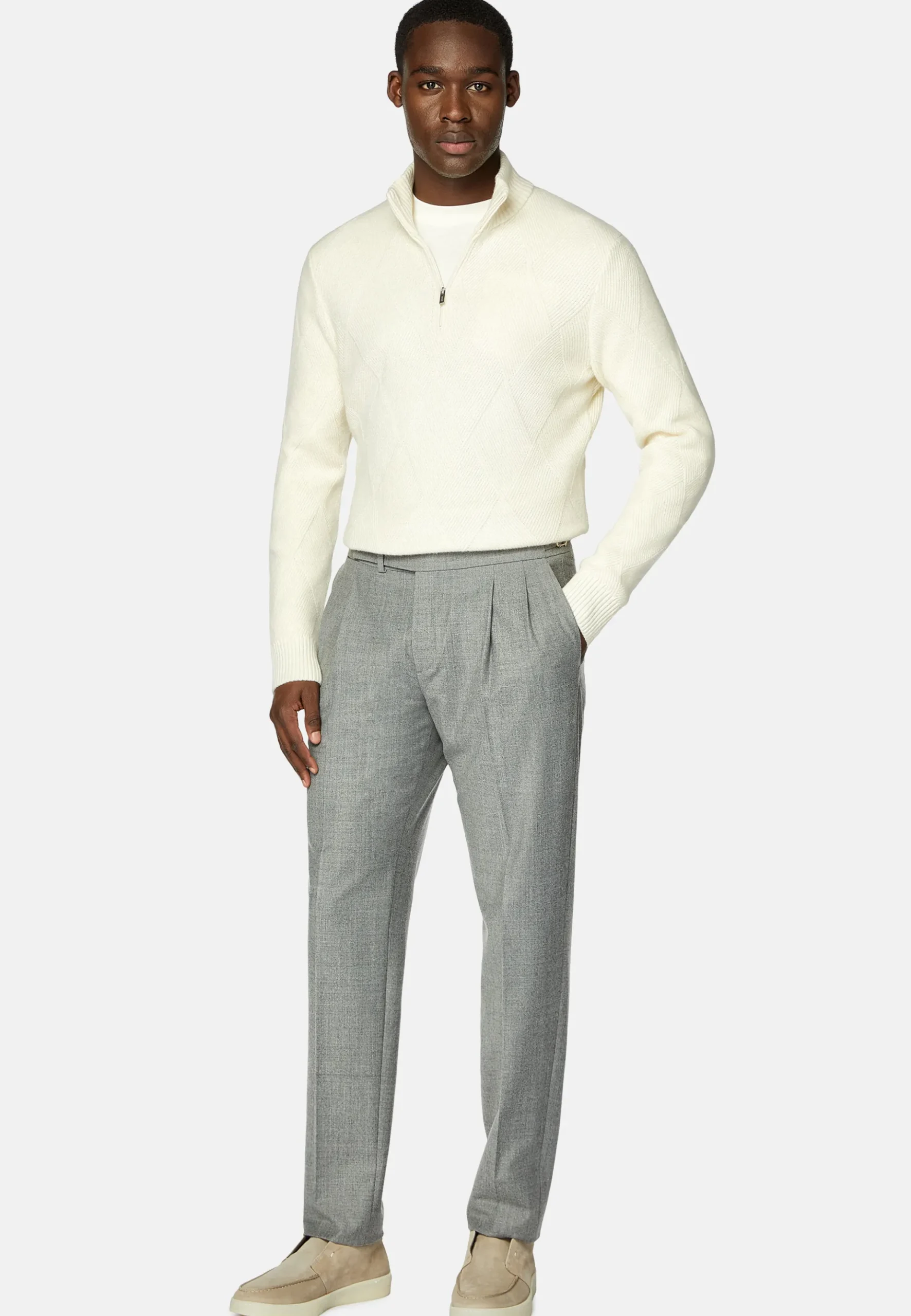 Fermeture boutonnée, avec zip et ajustement latéral, poches avant en biais et poches arrière.