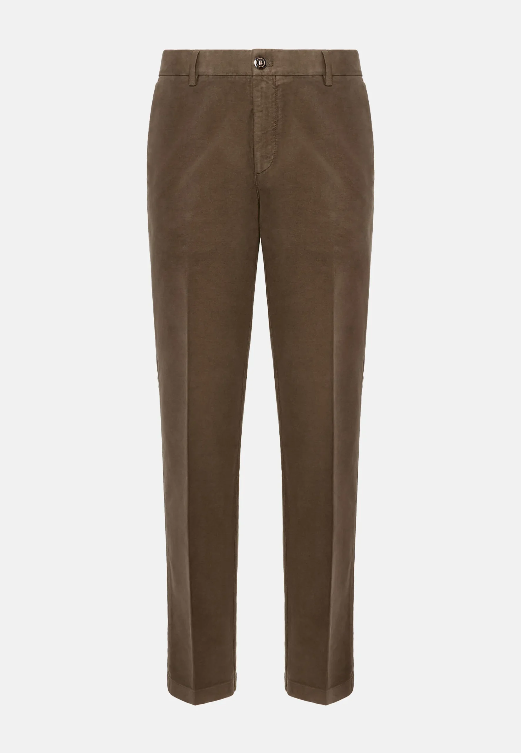 Fermeture avec bouton et zip, poches avant en biais et poches arrière.