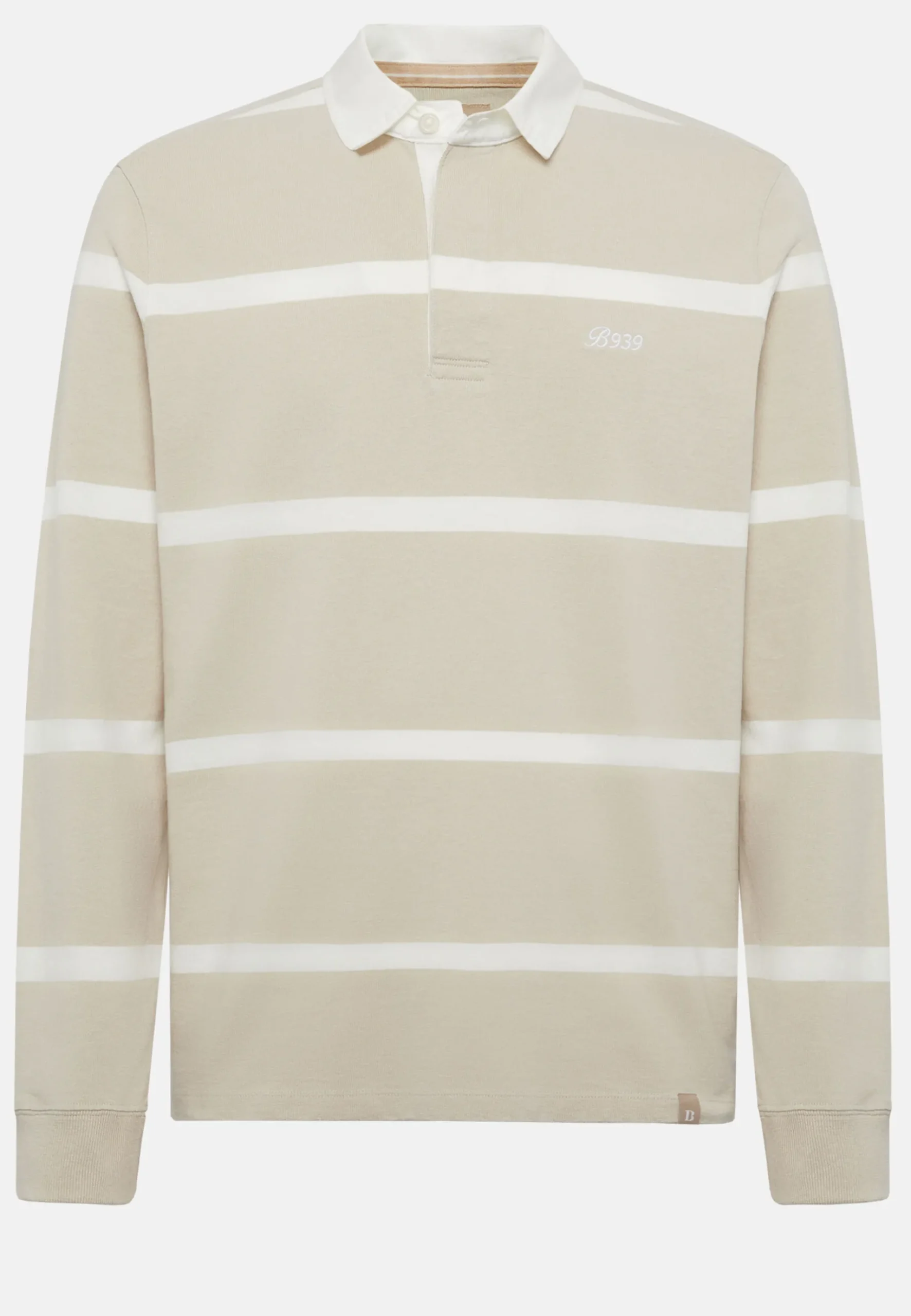 Ce modèle présente un motif à rayures, des poignets en côtes, un boutonnage à l’avant dans un tissu avec motif à chevrons, des boutons avec logo, le logo B939 brodé sur la poitrine et le B de Boggi appliqué en bas à gauche du vêtement.