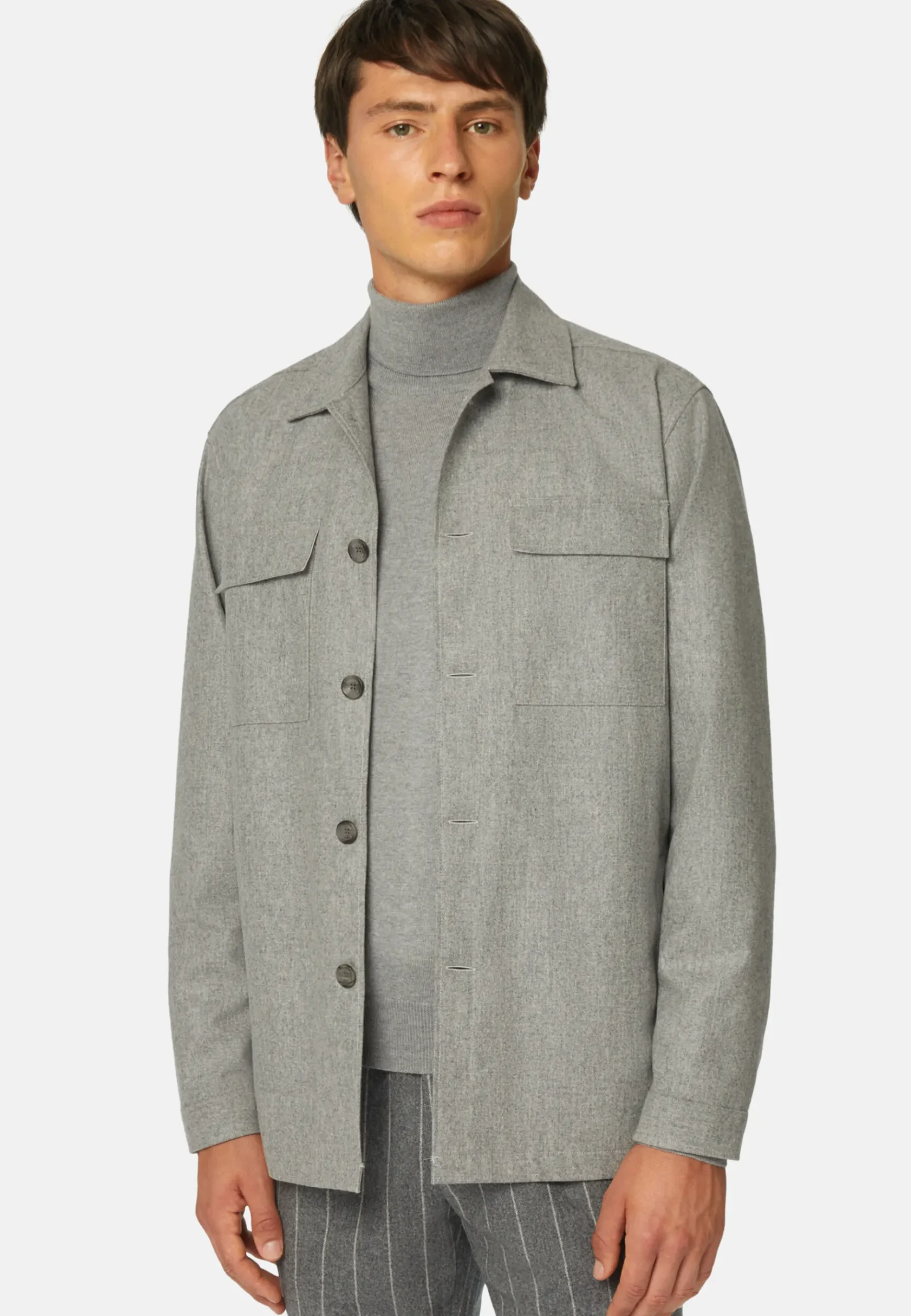 En flanelle de pure laine mélangée unie, de la manufacture italienne de tissage Vitale Barberis Canonico.